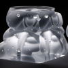 流れおちる熱く熔解されたガラス、融けたガラスをひたすら垂らし、自由に積み重ねる。幼児の頃の様に無心で素材とたわむれる造形はこころが踊る。 ガラスの塊を眺め、冷静に切断し静かに磨き上げる。かたまりの中の世界を磨き 浮かびあがる時間は静かで穏やかに感じる。 白く静寂な光によって照らされ浮かびあがるかたまりは、二つの技法と、 二つの思いを対比させ、統合し、現在がある。
